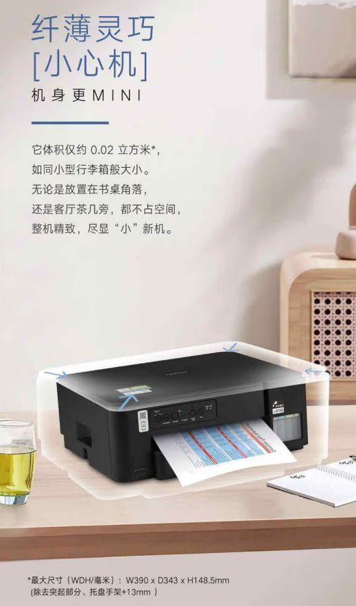 在家庭空间寸土寸金的当下,兄弟DCP-T435W的身形可以用小巧来形容,其三围只有390mm×343mm×148.5mm。仅14.85cm的高度,更是让它能轻松融入书房的角落、客厅的茶几,甚至孩子的学习桌,丝毫不显突兀。同时纯黑色的外观设计,搭配磨砂质感机身,让它既简约大气又能巧妙隐藏指纹,与各种家居风格都能完美适配。