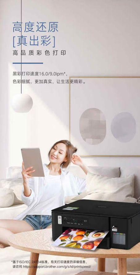 除此之外,这款打印机还有一个优势就是打印速度了,黑白及彩色打印速度分别达到16.0ipm和9.0ipm,无论是作业打印还是彩色报告,都能迅速完成,满足快节奏的学习需求。色彩增强技术的运用,让打印出的文字清晰锐利,图片色彩饱满、细腻真实,为家庭生活增添更多色彩。并且不少用户在使用喷墨打印机时,一段时间不用就会出现堵头的情况,而兄弟DCP-T435W在通电待机1000小时后依旧可以快速打印,打印效果坚实可靠。